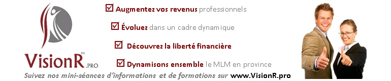 Le principe du MLM vous étant expliqué à la séance VisionR.pro, vous aurez réponse à la question facilement sur la base même du MLM. Nous sommes confiant que vous aurez compris pour nous comme pour vous, ce qui sera pour nous une première réussite à l'issue de la formation.